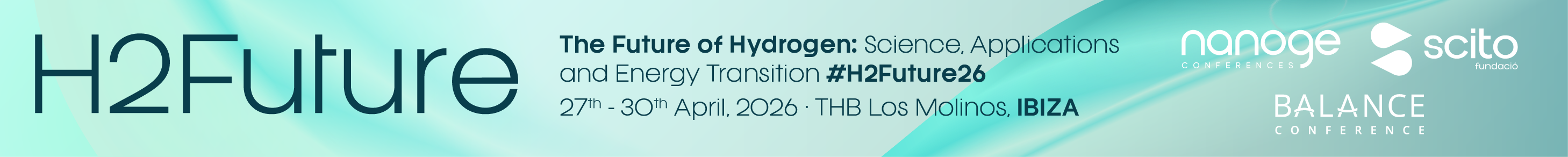 The nanoGe Conference on The Future of Hydrogen: Science, Applications and Energy Transition (H2Future26), will take place from the 27th to the 30th of April 2026 in THB Los Molinos, Ibiza.