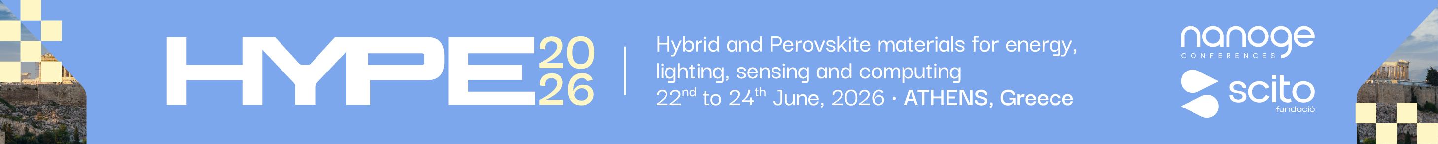 The Hybrid and Perovskite materials for energy, lighting, sensing and computing conference (HYPE26) will take place from June 22nd to 24th at the Athens Marriott Hotel.