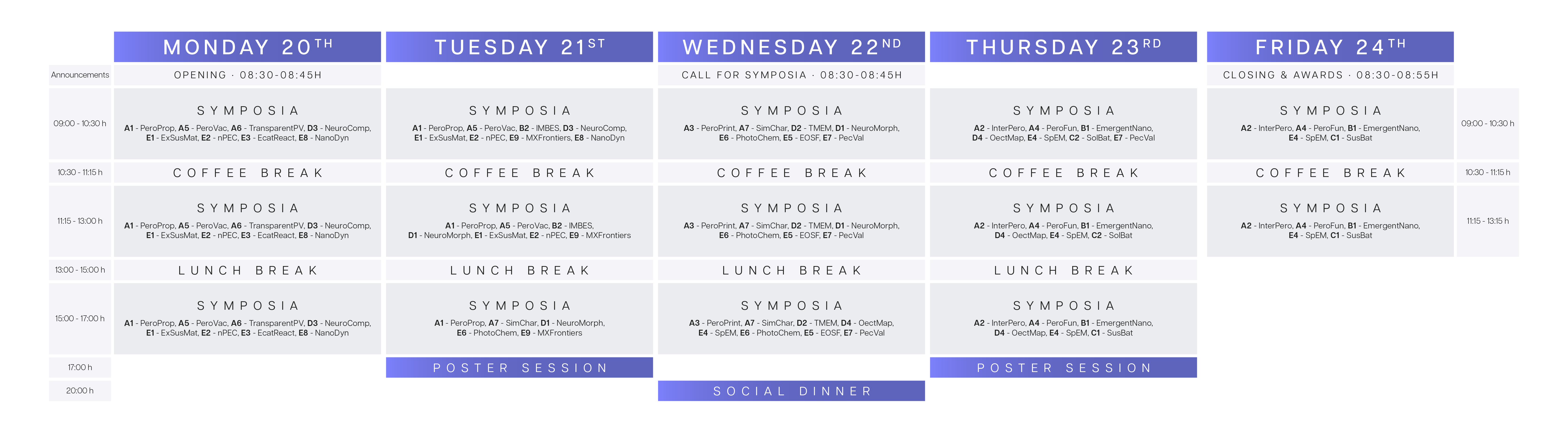 MONDAY 20TH - TUESDAY 21ST - WEDNESDAY 22ND - THURSDAY 23RD - FRIDAY 24TH