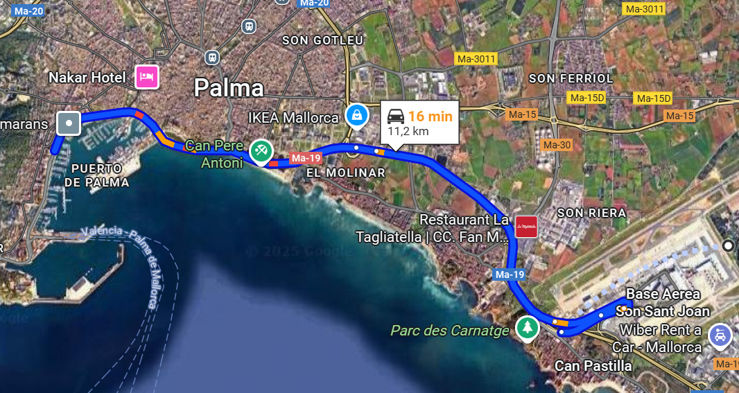 From the Palma de Mallorca airport:
