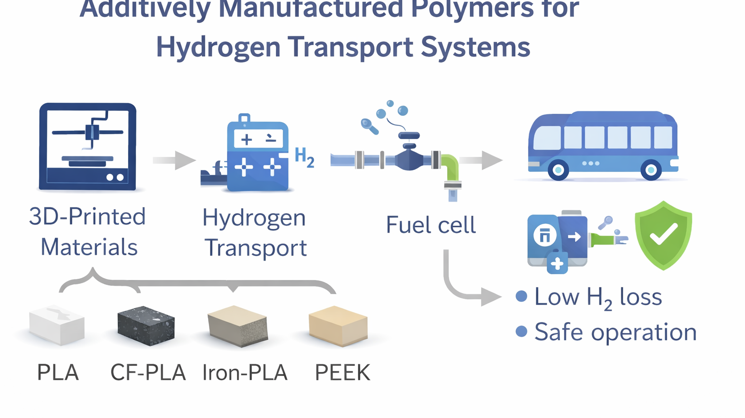 It has been considered the prospects of using polymer and composite materials manufactured using 3D printing technologies for the development of hydrogen-compatible transport infrastructure components. The role of hydrogen as a promising energy carrier for environmentally friendly transport, including cars and buses, is analyzed. The principles of operation of electrolyzers and fuel cells used for hydrogen production and utilization are described. Particular attention is paid to the potential of additive manufacturing for producing functional elements of hydrogen systems using various advanced materials such as standard PLA, PLA with metal powders, conductive fibers, and high-performance polymers including PEEK, MDPE, HDPE, as well as composite materials like CF-PLA. The influence of temperature and pressure on hydrogen losses during transportation and operation of materials is analyzed. It is shown that hydrogen permeation through polymer pipelines remains relatively low and does not lead to critical gas losses under real operating conditions. The obtained results confirm the perspective of applying new materials produced by additive technologies for the development of safe and efficient hydrogen transport infrastructure.