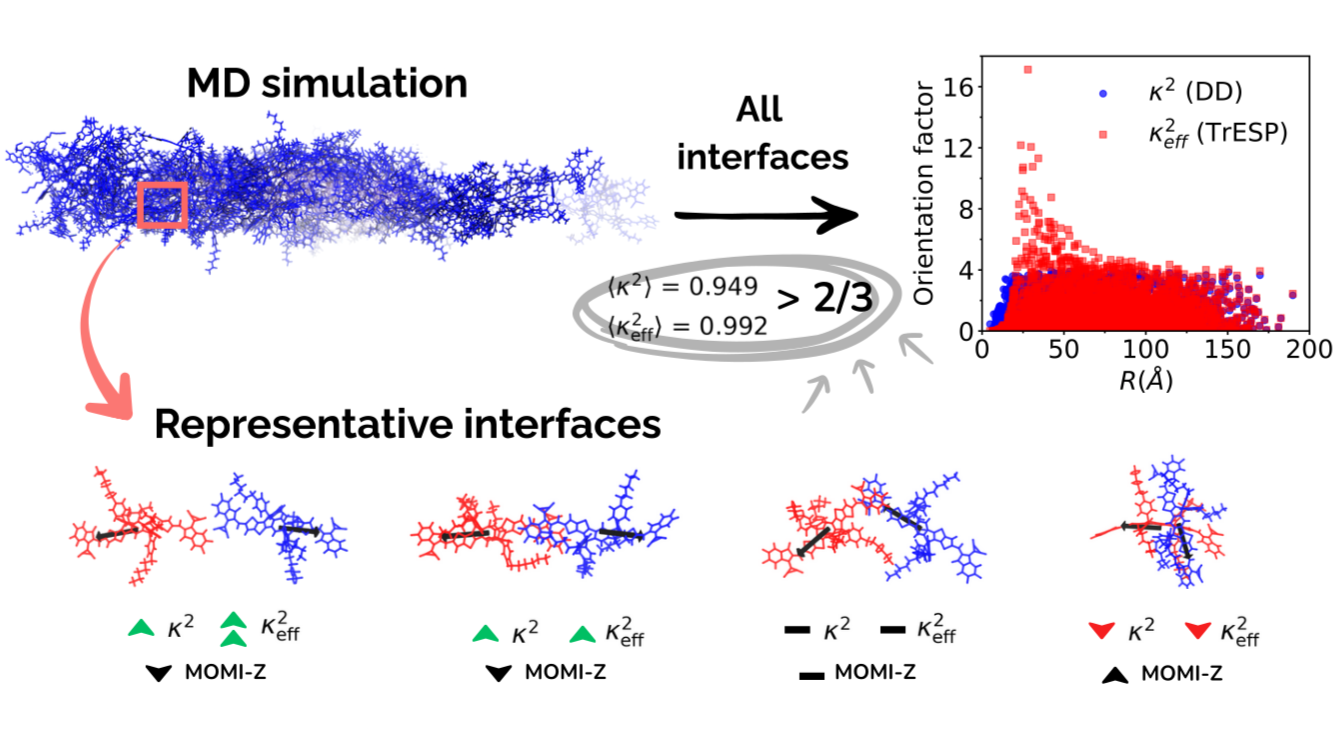 Fluorescence resonance energy transfer (FRET) is a fundamental mechanism for non-radiative electronic energy transfer (EET) widely observed in materials science [1] and biophysics [2]. However, given the challenge of balancing accuracy and computational cost in quantum calculations of large systems, it is typically modeled within the dipole-dipole approximation, using frequently unsuitable statistical methods to estimate the orientational factor (κ). To overcome the so-called Kappaphobia [3], i.e., the reluctance to determine κ adequately, we combined Molecular Dynamics (MD) simulations with Density Functional Theory (DFT) and Time-Dependent Density Functional Theory (TD-DFT) calculations to properly assess the orientation factor on representative nonfullerene electron acceptors (NFAs). An MD-based solvent evaporation protocol was performed to model experimental spin-coating techniques, and the κ values were determined for 9000 pairs of molecules at thin-film conditions. As a result, the κ2 parameter showed broad dispersion, with significantly higher average values of 0.949 and 0.765 for ITIC-4F and Y6 films, respectively, compared to the standard 0.476 and 2/3 statistical values. Moreover, by considering the system-specific κ2 values, FRET rates became consistent with the experimental trend on exciton diffusion lengths. Finally, we assessed the limitations of the dipole-dipole approximation by employing the transition charges from electrostatic potentials (TrESP) method [4], and identified a simplified molecular descriptor that can be used as a cheap tool to extract initial insights into the orientation factor between NFA-like molecules.