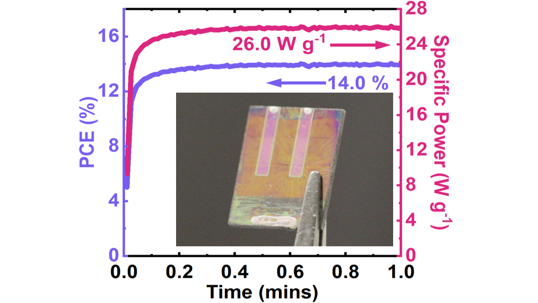 Carbon fibre-reinforced polymers (CFRPs) combine high strength and elastic modulus with low weight, and are thus an important material within the automobile and aviation industries. Combining high performance perovskite solar cells (PSCs) with CFRP substrates presents an opportunity to create structural materials that also generate power. Here such mobile power applications require the use of devices having a high specific power in which both the efficiency and the weight of the solar cell is of critical importance. Here, we discuss the fabrication of n-i-p PSCs via ultrasonic spray coating on CFRP substrates. Our devices yield a stabilized maximum power conversion efficiency (PCE) of 14.0 %, corresponding to a specific power of 26.0 W g-1. We also spray-coat PSCs onto dome-shaped CFRP substrates having a maximum PCE of 12.3 %, equivalent to a specific power of 22.8 W g-1. Importantly, we subject devices to mechanical fatigue testing, repeatedly applying a load of 50 N, with devices retaining 100 % of their prestressed PCE after 25 stress cycles. We believe this is the first demonstration of curved, rigid, CFRP based PSCs that act as load bearing structures, making them suitable for mobile power applications.