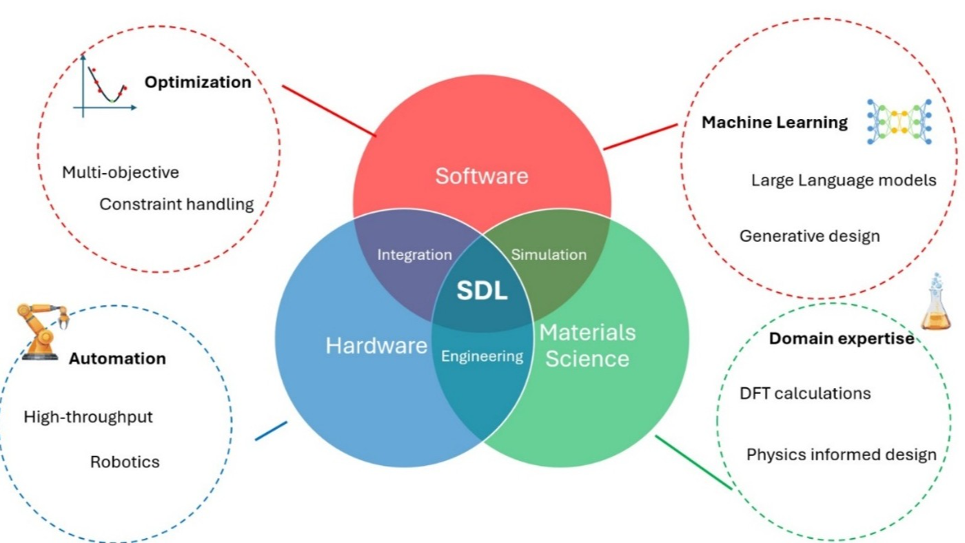 Looking forward, we position current SDLs within an evolution from basic automation toward fully autonomous discovery systems. Present implementations achieve approximately 71% recipe success rates with single-domain focus. Near-term integration phases will enable cross-domain optimization and manufacturing awareness. Ultimately, agentic discovery systems incorporating goal-directed reasoning and integrated knowledge representations will autonomously navigate from hypothesis generation through experimental validation to scale-up. Our work demonstrates that combining high-throughput hardware, rigorously validated software, and targeted materials expertise creates a powerful engine for next-generation photovoltaic development.