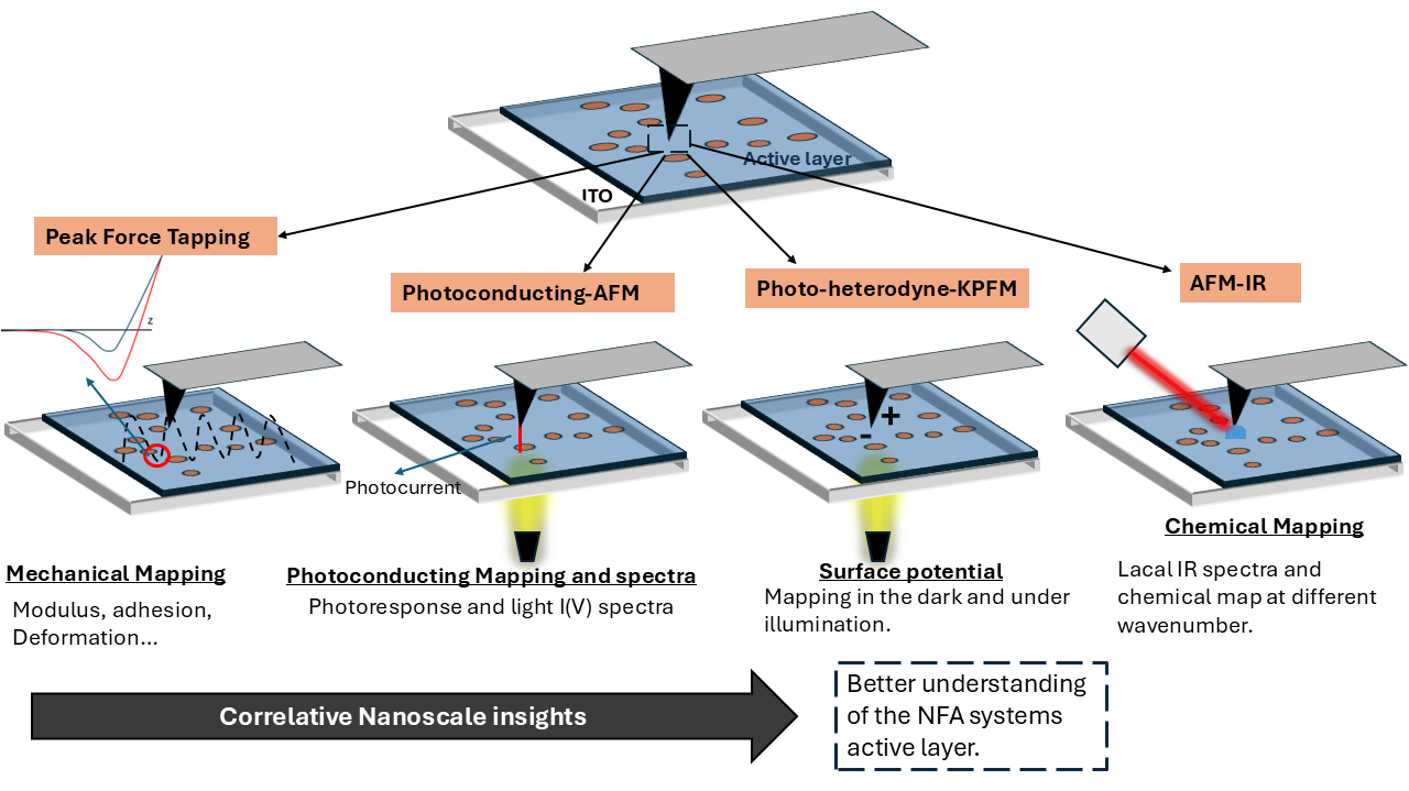 By the correlative analysis of these properties, a deeper understanding of the organization of the donor and acceptor within the active layer is possible. This original approach enables multichannel properties extraction that can help optimize and design higher efficient devices for the future.