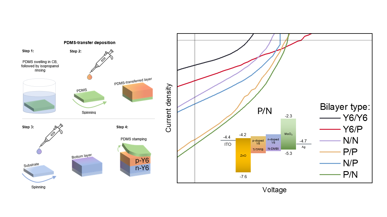 Historically, inorganic solar cells are designed with a p-n junction, which improves efficient charge collection and separation. However, this concept has not been tested on organic semiconductor materials and remains largely unexplored. With the intrinsic charge-generating property of Y6 and its propensity for both p- and n-doping, it is possible to design a first p-n junction of single-component organic solar cells. Moreover, the p-n junction in organic solar cells have a potential to enhance the charge generation ability of Y6, improving the exciton separation. In this study the p-doping with TrTPFB and n-doping with N-DMBI of Y6 are utilised for the fabrication of the p-n junction. The fabrication of the p-n junction involves a combination of spin-coating and PDMS-transfer methods for the bilayer formation. The results demonstrate the improvement of charge generation leading to enhanced short-circuit current and power conversion efficiency in p-n junction architecture devices. Among all studied variations of the bilayers, the p-n junction with p-doped Y6 as a bottom layer and n-doped Y6 as a top layer demonstrates the best performance. These results reveal that it is possible to form a p-n junction for improving the characteristics of single-component solar cells, providing an avenue to further improvement of the next-generation single-component organic solar cells.