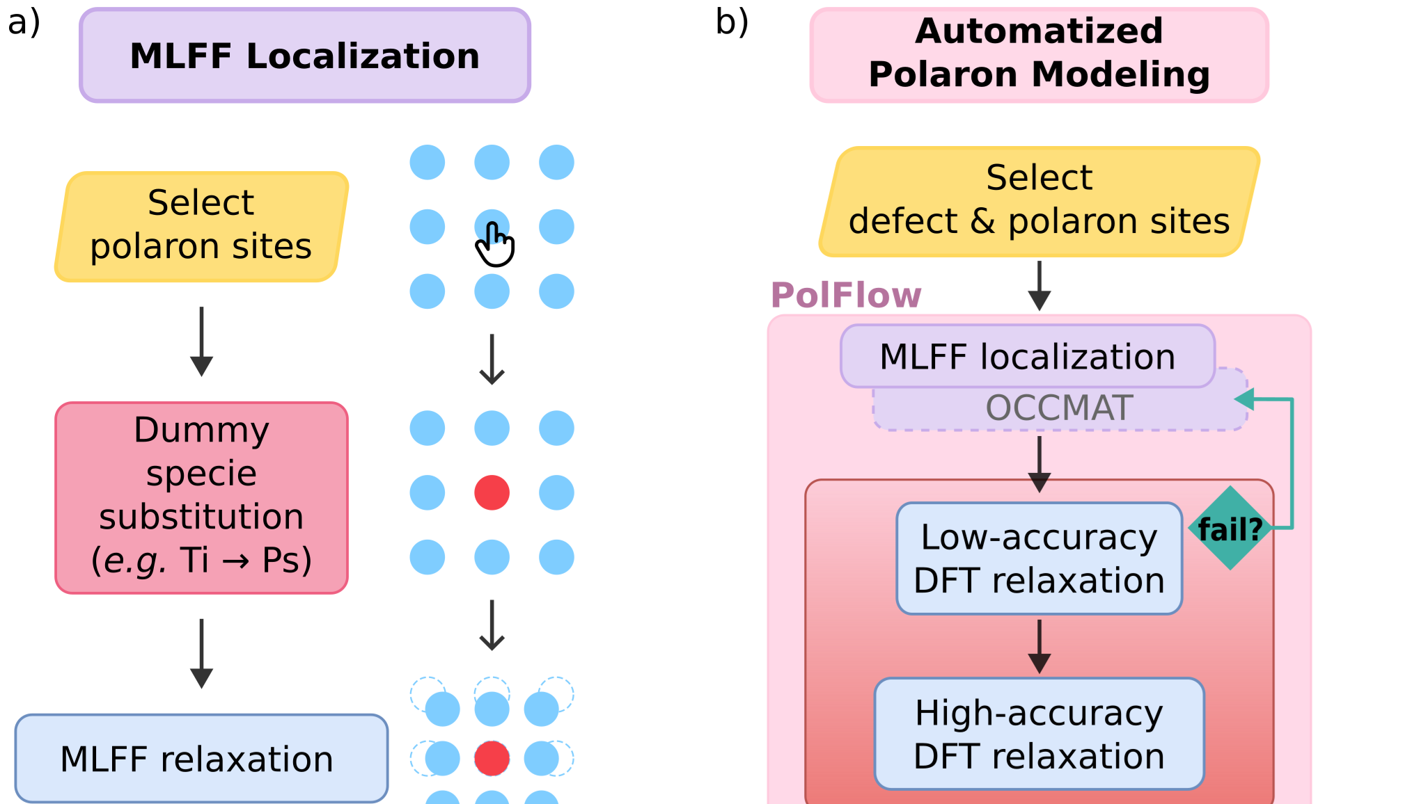 This work advances fundamental understanding of defect-polaron interactions while offering a fully automated and efficient computational suite for the study of polaronic materials, facilitating characterization and design of metal oxide catalysts.