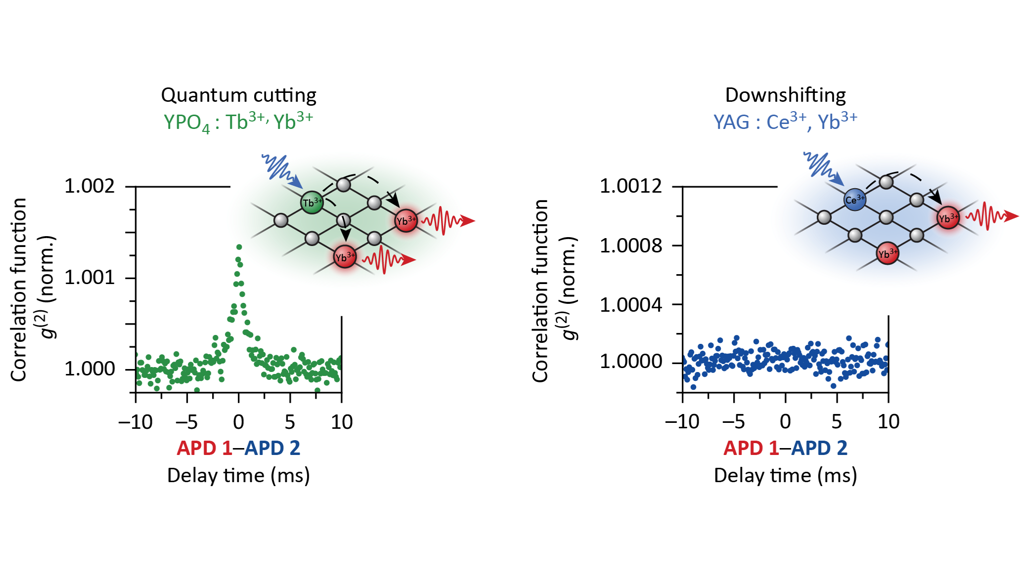 In this presentation, we show that the photon correlation analysis[1] is a universal strategy to unambiguously reveal quantum cutting. We have tested two materials, YPO4 co-doped with Tb3+ and Yb3+ and YAG co-doped with Ce3+ and Yb3+. Both are reported in the literature to perform quantum cutting via absorption of blue light followed by cooperative energy transfer to near-infrared-emitting Yb3+.[2,3] We find that YPO4:Tb3+, Yb3+ shows bunched emission, characteristic of quantum cutting. In contrast, YAG:Ce3+, Yb3+ shows regular Poissonian emission statistics. This reveals that YAG:Ce3+,Yb3+, despite various claims,[3,4] is not a quantum-cutting material.