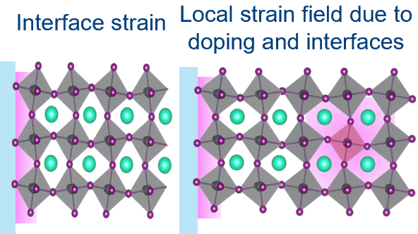 In this work, we propose a novel approach to induce bulk-localized nanoscale strain through partial B-site substitution in CsPbI3. By incorporating a small amount of dopant cations at the Pb²⁺ site, we introduce localized lattice distortions throughout the bulk of the film. This nanoscale strain reduces the spontaneous orthorhombic distortion of the crystal lattice and increases the Pb–I–Pb bond angle, both of which are critical factors in stabilizing the black perovskite phase. Unlike interface-limited strain methods, our strategy enables stabilization throughout the entire film thickness, thereby overcoming the primary limitation of previous strain engineering techniques.
