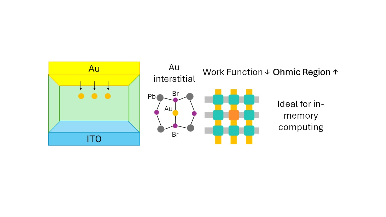 Analog memristors without conductive filaments are promising candidates for neuromorphic and in-memory computing due to their superior multilevel switching capabilities, reproducibility, and low energy consumption. Among these, halide perovskite-based memristors—typically fabricated in metal–insulator–metal (MIM) architectures—leverage interfacial valence change mechanisms (VCM) or self-doping to modulate the Schottky barrier and achieve analog resistive switching. However, most reported devices exhibit highly non-linear current–voltage (I–V) characteristics, with a very narrow ohmic region, which limits their effectiveness in applications such as vector-matrix multiplication (VMM), where linear device response is essential for accurate and efficient computation.