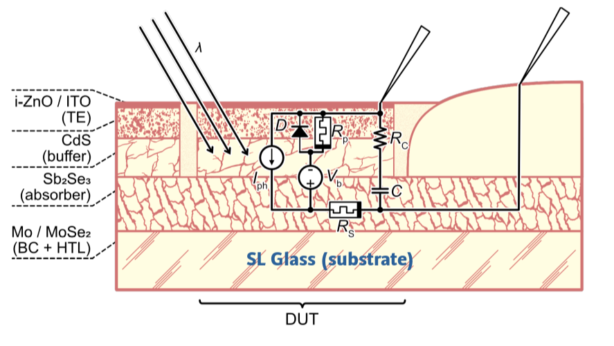 As a case study, we analyze a Mo/MoSe₂/Sb₂Se₃(10 nm)/CdS(2 nm)/ITO solar cell structure, revealing unexpected memristive properties. These are investigated through triangular waveform and pulsed voltage experiments, with transient current responses recorded. Our enhanced single-diode model, modified to include parasitic memristive effects, shows strong agreement with experimental data, validating the presence of memristive behavior in the system.