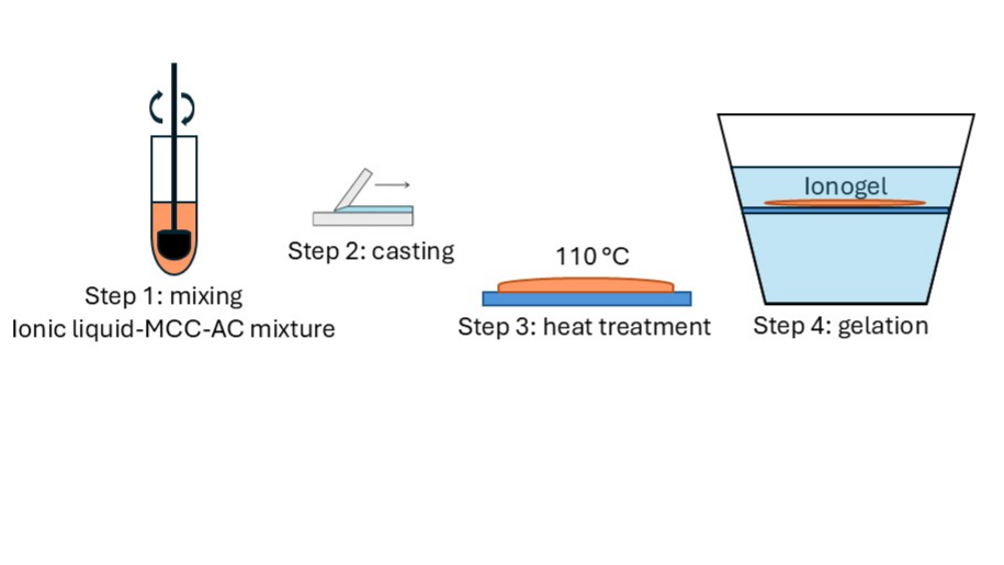 Microbial fuel cells (MFC) are bioelectrochemical systems that are able to oxidize the organic part of wastewater sources to a certain degree while providing electricity from the aforementioned reaction. One major obstacle that must be addressed is the use of non-environmentally friendly polymer-based membranes in MFCs, which is one of the main reasons why these green systems have not yet achieved widespread adoption. Ionogels might offer a sustainable solution to overcome this challenge, because it can be made by using carbohydrates. Cellulose-based ionogels can be made by mixing microcrystalline cellulose (MCC) with an ionic liquid, 1-butyl-3-methylimidazolium chloride (BMIMCl), which is capable of dissolving cellulose at elevated temperature (110 °C). Following heat treatment, a colloidal cellulose solution (sol) is formed. When the aforementioned sol is immersed in distilled water for 2 hours, the sol-gel transformation occurs and ionogel is made. The as-prepared ionogel is applicable in MFCs [1], but its weak mechanical properties make its use problematic. To enhance the physical properties of the ionogel, various amounts of activated carbon (1%, 50%, 100% relative to the weight of MCC) were added to the mixture. These modified ionogels exhibit improved flexibility and strength, while chemical properties varied based on carbon content.