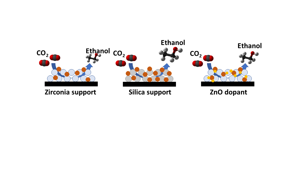 The electroreduction of CO₂ into value-added products has emerged as a promising strategy for CO₂ emission mitigation and utilization, offering both environmental and economic benefits. This process converts industrial waste into a valuable feedstock for producing chemicals such as carbon monoxide, formate, ethylene, methanol, and ethanol. Among these, methanol and ethanol stand out as clean fuels and key chemical intermediates with increasing demand, particularly in fuel cells and synthetic fuel applications. Among various catalytic materials, Cu-based catalysts have shown the highest potential for CO₂ electroreduction to alcohols [1]. However, their selectivity remains limited due to the competing formation of byproducts such as hydrogen, carbon monoxide, and formate. To enhance alcohol selectivity, several strategies have been explored, including catalyst design, support material modifications, the incorporation of doping agents, and the optimization of reaction conditions such as electrolyte pH and composition [2]. In this work, we evaluate the selectivity of CO2 electroreduction toward alcohols (methanol and ethanol) using modified Cu-based catalysts. Commercial Cu nanoparticles (C2CAT) are used as the base catalyst. The study explores three key modifications: (i) varying Cu mass loading from 5 to 10 wt.%, (ii) assessing different porous support materials (zirconia and alumina), and (iii) incorporating ZnO as a dopant to enhance alcohol selectivity. The electroreduction experiments are conducted in a filter-press reactor with an active area of 10 cm². The Cu-based catalyst is deposited onto a gas diffusion layer (GDL, Sigracet 39 BB) with a catalytic loading of 1 mg cm⁻². The cathode is continuously supplied with CO₂ at a flow rate of 200 mL min⁻¹. Additionally, electrolyte composition is examined as a factor influencing selectivity. The effect of different cations (K⁺ or Na⁺) is investigated, along with variations in feed flow rates ranging from 0.7 to 5.7 mL min⁻¹. The results of this study will provide insights into the optimal Cu catalyst design for maximizing alcohol selectivity, contributing to the advancement of CO₂ electroreduction as a viable alternative to conventional ethanol and methanol production.