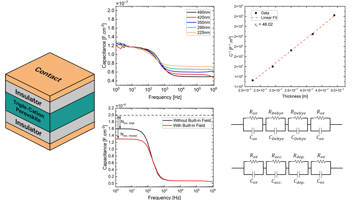 In this work, we introduce a capacitance–frequency approach that enables extraction of both quantities in a controlled and reproducible manner. By carefully designing a capacitor-like device structure (suppressing electronic injection), the high-frequency response probes the dielectric properties of the perovskite, while the low-frequency response reflects mobile-ion redistribution.
