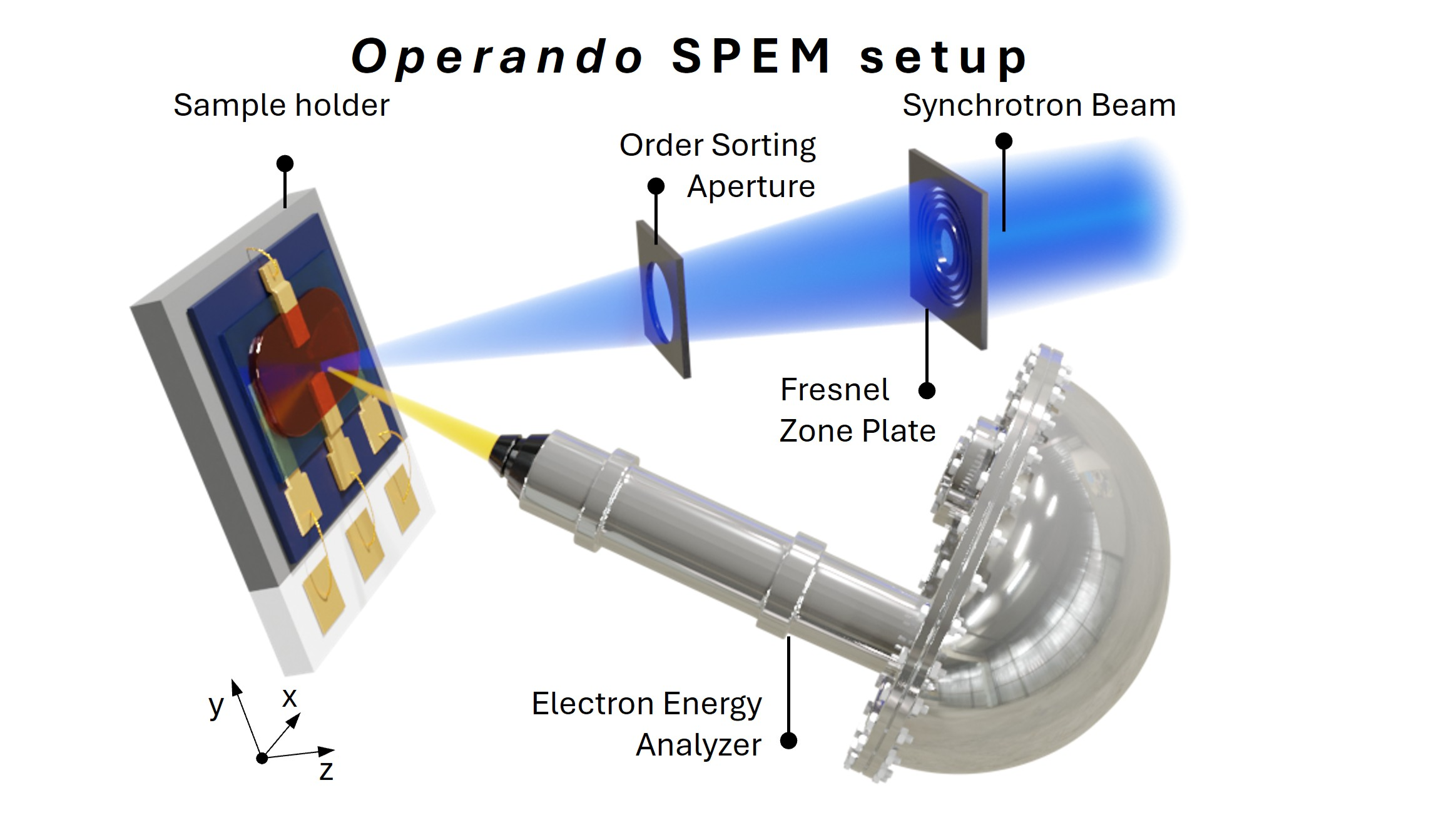 As electronic devices continue to evolve toward increasing complexity and reduced feature sizes, the need for operando characterization techniques capable of resolving local electronic structure under realistic working conditions becomes increasingly critical. Synchrotron-based scanning X-ray photoemission spectromicroscopy (SPEM) offers a powerful route to directly probe, with sub-micrometer spatial resolution, the electrostatic energy landscape and electric-field distribution in functional nanoelectronic architectures. In this talk, I will discuss the application of operando SPEM to a broad class of device platforms, including field-effect transistors, heterojunctions, and diodes assembled from thin flakes of two-dimensional (2D) transition metal dichalcogenides, as well as devices based on colloidal nanocrystal (quantum dot) films. By exploiting a highly focused soft X-ray beam generated at the SOLEIL synchrotron using Fresnel zone plates [1], SPEM enables direct mapping of electronic-spectrum shifts induced by applied gate, drain–source, or vertical bias fields, while devices are electrically stimulated in situ. This provides quantitative access to the gate efficiency and enables direct extraction of the gate lever arm, in-plane potential drops, and the full vectorial distribution of local electric fields with sub-μm spatial resolution. In 2D materials-based devices, this technique reveals nanoscale current pathways shaped by flake geometry, thickness, finite-size effects, interface morphology, surface/topographic inhomogeneities [2,3]. In quantum-dot-based devices, the same approach resolves how nanocrystal electronic structure evolves under the combined influence of interfaces with transport layers and operational electric fields, offering insights inaccessible to ex situ measurements alone or standard transport measurements [4]. This capability makes it a versatile tool for the rational design and optimization of nanoelectronic devices, bridging local bias-dependent electronic structure with macroscopic device response.
