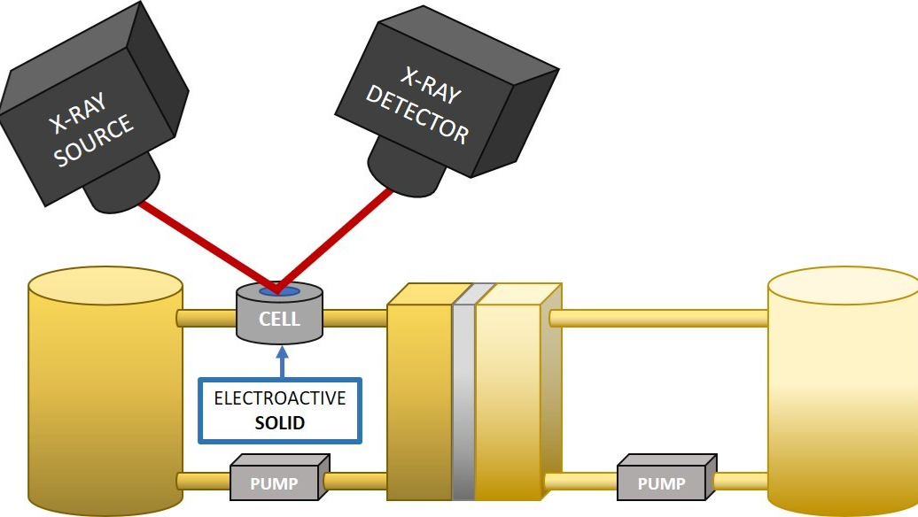 To overcome these constraints, redox-mediated flow batteries (RMFBs) have recently emerged as a promising alternative. This approach integrates solid electroactive materials to boost energy density. The core mechanism involves a spontaneous and reversible charge transfer between the solid “booster” material and dissolved redox mediators. Despite their potential, RMFBs remain at an early stage of development, and fundamental understanding of the thermodynamics and kinetics governing solid–solution charge transfer is still limited. Progress in this field therefore depends on operando analytical techniques capable of probing these interactions under realistic flow conditions.