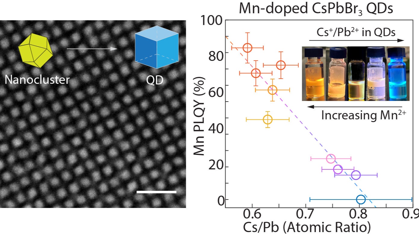 Understanding the relationship between the structural and optical properties of lead halide perovskite quantum dots (QDs) is crucial for their use in optoelectronics. Achieving this requires precise control during synthesis. However, the fast growth of highly ionic perovskite QDs and their dynamic surface passivation present significant challenges in managing their size, shape, and impurity doping during production. Although considerable progress has been made in controlling the size of perovskite QDs, especially CsPbBr3, regulation of surface morphology and impurity doping remains difficult. Here, we first explain the growth mechanism of CsPbBr3 QDs under thermodynamic equilibrium control, allowing gram-scale synthesis of strongly size-confined, monodisperse QDs.[1] Next, we describe how the surface facets of CsPbBr3 QDs can be adjusted by annealing them with facet-selective dicationic ligands designed to match the geometric arrangement of Cs+ vacancies. Finally, we present a doping mechanism based on electrostatic surface Mn2+ adsorption, which enables efficient dopant incorporation into strongly confined CsPbBr3 QDs with a Cs-deficient stoichiometry compared to undoped ones.[2] Our synthesis achieves a Mn2+ doping/alloying concentration of up to ~44%, with Mn2+ photoluminescence efficiency exceeding 90%. This allows for the determination of the intrinsic exciton-to-dopant energy transfer rate. Additionally, we will explore single-particle spectroscopy of precisely controlled perovskite QDs for single-photon sources.