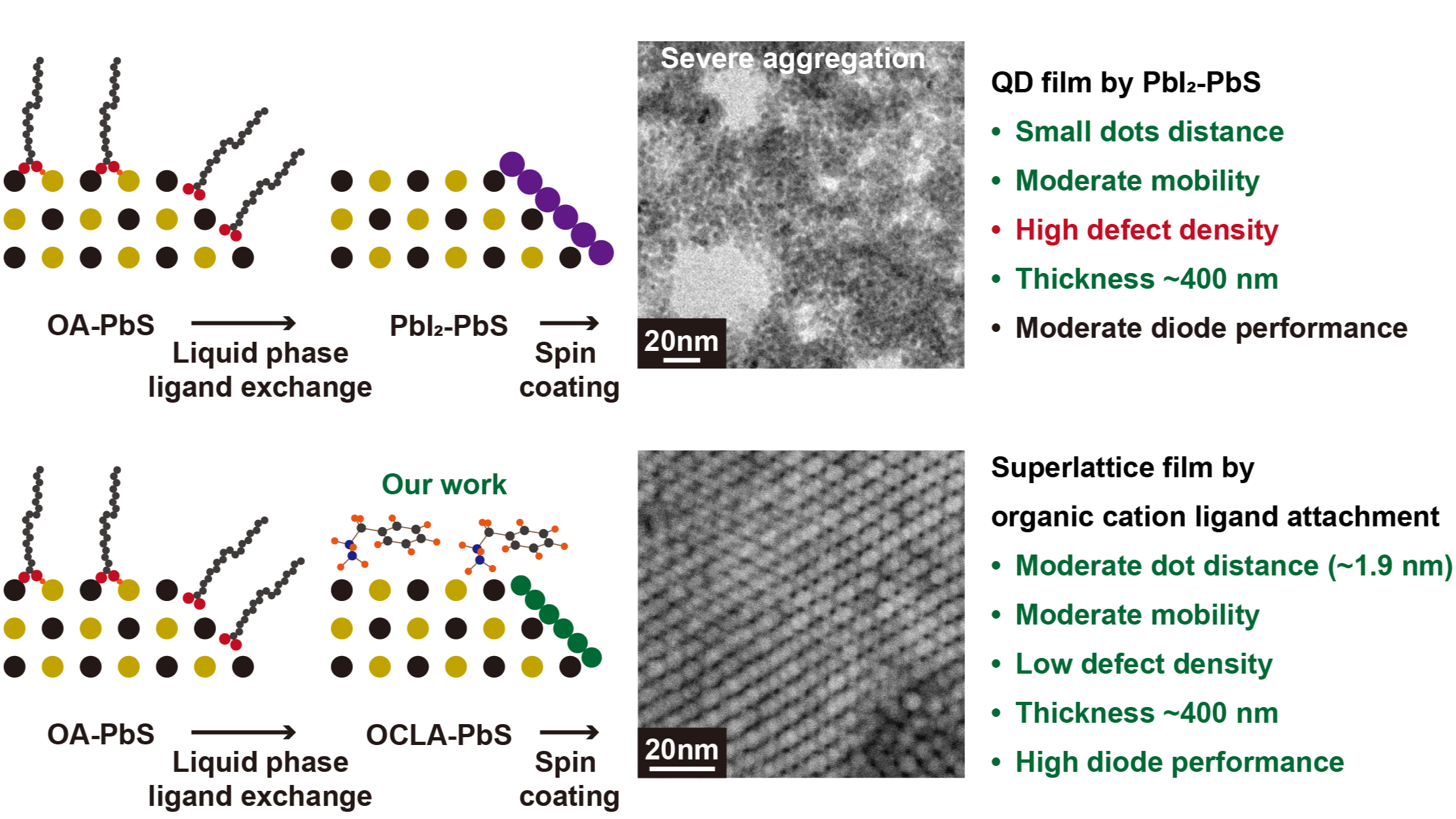 Crucially, the aromatic structure incorporated in the OCLA ligand facilitates rapid, self-limiting self-assembly. Utilizing potential pi-pi interactions, this strategy guides the PbS CQDs into a remarkably ordered 3D rhombohedral superlattice structure during a simple, single-step spin-coating process, enabling the fabrication of thick (> 400 nm) films.