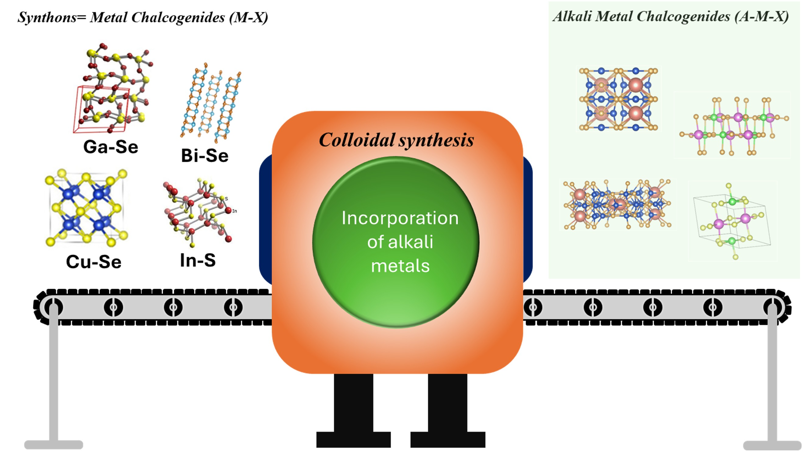 Universal strategies have played a transformative role in organic synthesis, offering systematic and mechanistically guided approaches for constructing complex molecules.[1-3] Retrosynthetic analysis and standardized reactions, such as Suzuki coupling and Diels-Alder reactions, utilize well-established mechanisms and predictable kinetic pathways, enabling efficient and reproducible molecular synthesis.[4-6] These synthetic methods have greatly enhanced the reproducibility and scalability of synthetic processes. In this context, there is a growing demand for a universal synthetic approach for colloidal nanocrystals (NCs) to develop reproducible and scalable techniques suitable for a broad range of materials. A robust strategy of this nature would simplify the synthesis process, facilitating precise control over NCs characteristics to meet the needs of various applications. However, achieving such universality in colloidal NCs is hindered by complex reaction chemistry, nucleation kinetics, growth dynamics, and material-specific factors like temperature, solvents, and precursor selection.[8] Surface ligand interactions further complicate standardization, making material-specific generalized protocols a viable alternative.[8, 9] Recently, Cs-based alkali metal chalcogenides have gained interest as promising semiconductors for energy conversion and storage. While theoretical studies highlight their potential, limited nanoscale exploration and high-temperature synthesis constraints impede a deeper understanding of their properties and formation mechanisms.[10]