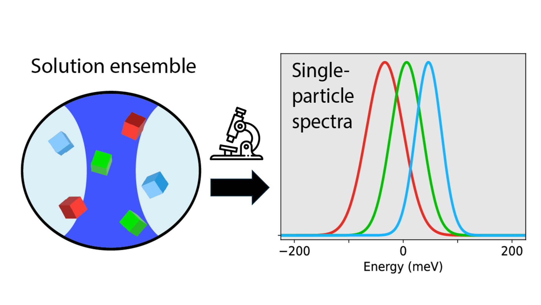 Today, the standard technique for the determination of single-NC emission properties and optical heterogeneity is single-NC spectroscopy [1]. While powerful, this approach can suffer from user selection bias and low statistical significance. In addition, single-NC measurements typically require very photostable samples. To address these deficiencies, we introduce a novel photon-correlation technique that extracts single-NC emission spectra from a solution ensemble with high statistical rigor. Unlike other ensemble-level photon-correlation [6] or nonlinear techniques [7], our method is able to accurately resolve asymmetric spectra and identify sub-populations of emitters.