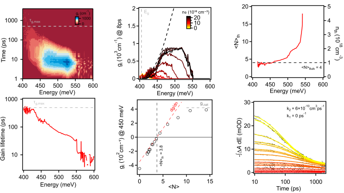 Until recently, applications of NCs for the mid-infrared spectral range (MIR, 2 - 10 μm) focused on their use in photo-detection based on Pb- and Hg-chalcogenides. When it comes to MIR stimulated emission of light, the premise to build printable lasers, no reports thus far indicated that this would be feasible with NCs. In part, this originates from a lack in development of techniques capable of probing NC electronic structure and ultrafast carrier dynamics in the challenging MIR range. One such technique is infrared transient absorption spectroscopy, a pump-probe method that enables us to study light-matter interactions on a femto - to nanosecond time scales. As used extensively in the visible, such a toolbox would not only allow us to understand how the excited states of narrow MIR band gap NCs fill up and deplete via potentially fast recombination pathways, but would also enable the direct and quantitative observation of stimulated emission and net optical gain.