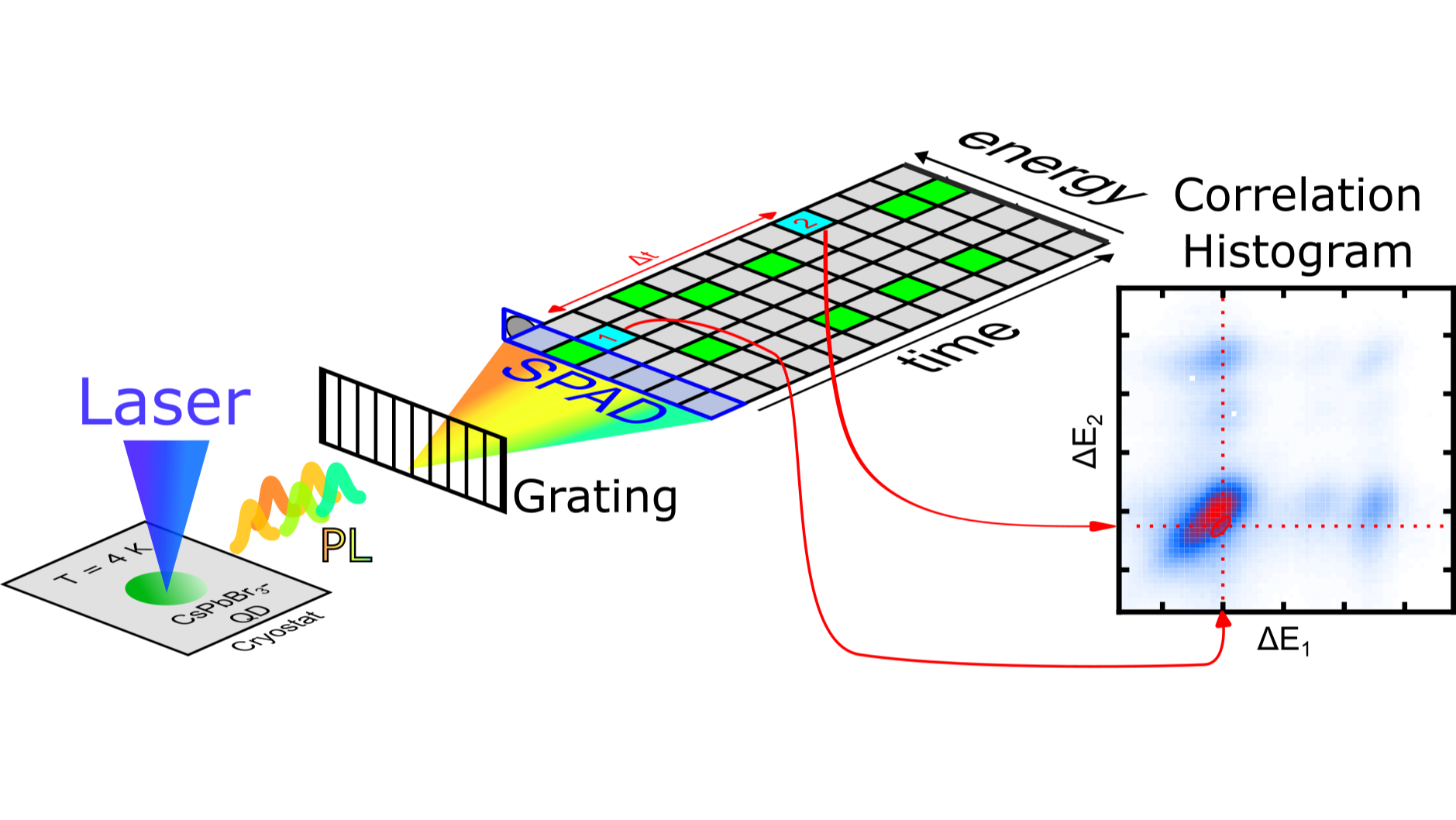 We statistically analyze the difference (δE) and average (〈E〉) of the energies for pairs of photons vs. the time difference (τ) between their detections. By performing this evaluation for an exponentially increasing τ we access the dynamics of SD from nanoseconds to seconds. For each time step, we quantify the distribution of δE and 〈E〉 across the entire measurement time of a single CsPbBr₃ NC (a few minutes) at a temperature of 6 K.