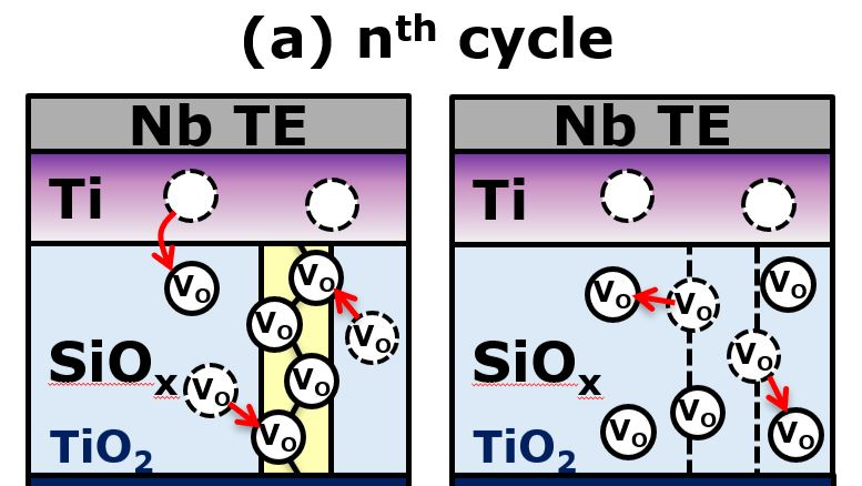 Here, we showed probabilistic bits (P-bits) with a novel Ti/SiOx/Ti stack, which is a fundamental building block for P-computing. The SiOx layer typically exhibits reliable TS behavior, resulting in robust voltage oscillations. When a Ti scavenging layer was introduced at the interface, oxygen vacancies were provided to the SiOx, causing oscillation to occur probabilistically. Through physical analysis and numerical calculations considering the charging and discharging process, we investigated the underlying mechanism of P-bit operation in the Ti/SiOx/Ti stack. This results in a sigmoidal probability curve for ‘1’ over a wide range of input voltage. Finally, we verified that leveraging the developed SiOx-based P-bit can significantly accelerate the algorithm for finding the optimal path in the vehicle routing problem through MATLAB simulation.