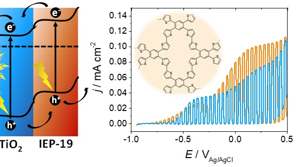 Solar energy conversion via photoelectrochemical (PEC) cells offers a promising solution to current energy challenges, but significant advancements in materials and cell configurations are necessary. Until now, inorganic semiconductors such as metal oxides have been widely studied due to their affordability, non-toxicity and high stability. However, challenges such as charge recombination, low electron mobility and in some cases limited visible absorption limit their ability to obtain high conversion efficiencies. There are several strategies to improve the performance of photoelectrodes, ranging from the modification of materials to the incorporation of more systems that favor the reaction. In our group we are tackling several of them, such as the modification of electrode surfaces for optoelectronic modification, the incorporation of cocatalysts and, as a more innovative part, the use of organic semiconductors to prepare hybrid electrodes. Organic polymers, particularly conjugated polymers (CPs), show potential due to their light-harvesting and conductive properties. In particular, conjugated porous polymers (CPPs), with their 3D structure, provide improved stability and higher surface area. The combination of CPPs with widely studied materials like TiO2 that suffer from limited visible light absorption due to their high bandgap energy can enhance the general performance.