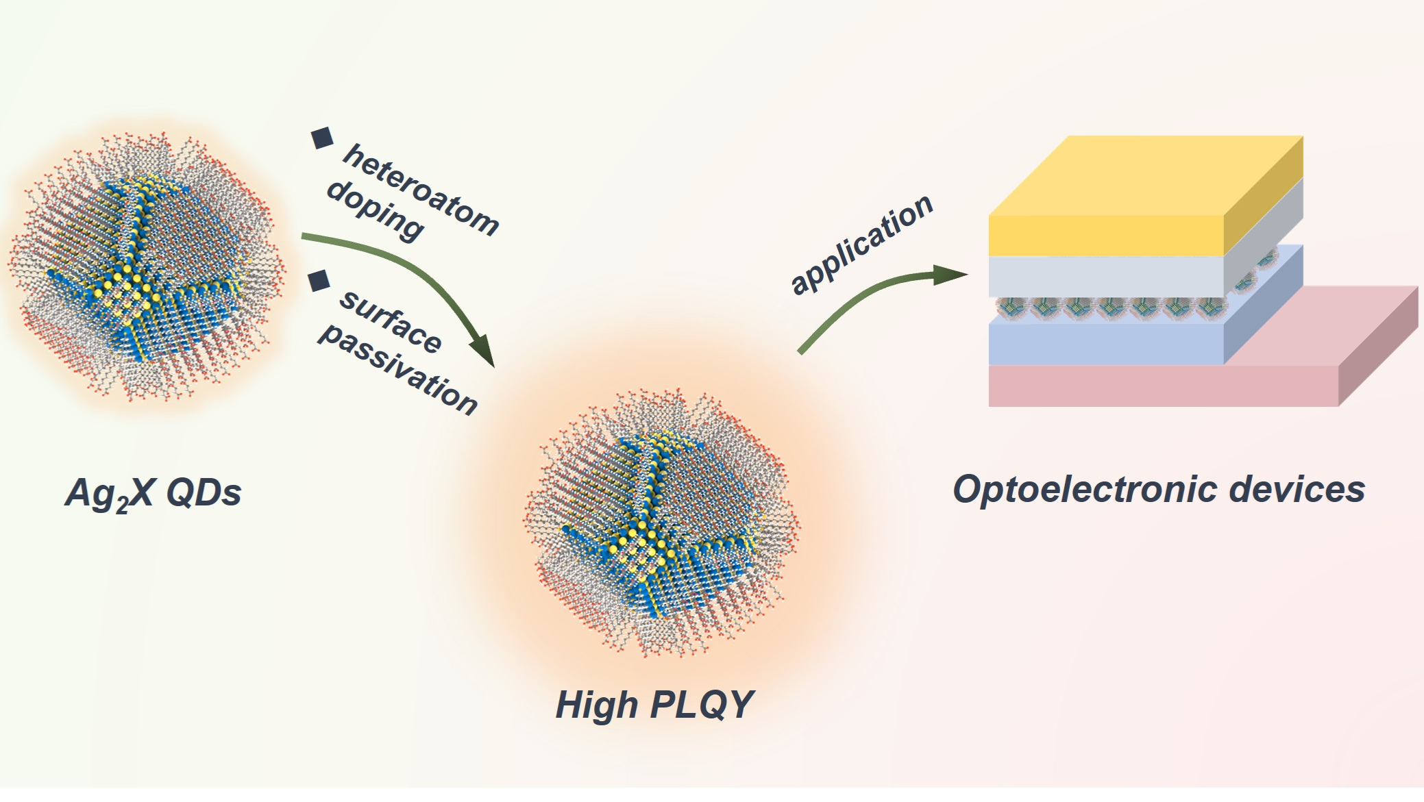 Colloidal semiconductor quantum dots (CQDs) have widely applied in various fields, range from optoelectronic devices to biological imaging, owing to their unique physicochemical properties like size-tunable absorption and fluorescence emission, high photoluminescence (PL) brightness, facile surface functionalization, and well stability. Thereinto, silver chalcogenide CQDs have garnered a considerable interest because of their narrow bandgap and the absence of toxic heavy metal components. However, synthesizing silver chalcogenide CQDs with high absolute PL quantum yields (PLQYs) remains a great challenge. Here, we have developed gold atom doping and surface ligand passivation strategies for silver chalcogenide CQDs, which effectively suppress their nonradiative recombination of excitons, achieving the CQDs with absolute PLQYs exceeding 87%. In addition, we have further explored the CQDs in near-infrared optoelectronic devices. The CQD integrated into light-emitting diodes (LEDs) achieve an external quantum efficiency (EQE) of 15.8% with electroluminescence extending beyond 1000 nm, while their application in photodiodes yields a specific detectivity exceeding 1013 Jones.