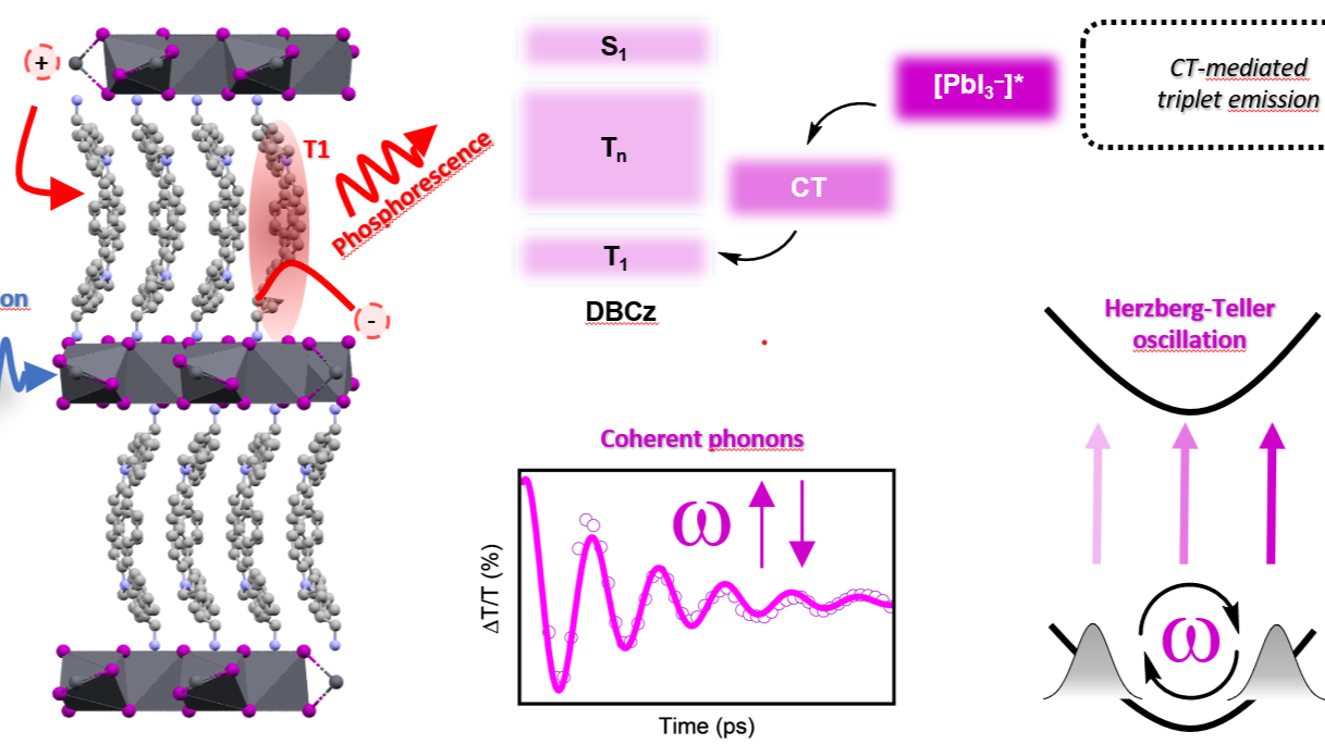 Hybrid organic-inorganic perovskites (HOIPs) have emerged as promising materials for optoelectronic applications, yet gaining control over their structural and electronic tunability remains a key challenge. In this study, we introduce 7H-dibenzo[c,g]carbazole (DBCz) as a novel electroactive organic cation that enables the formation of two distinct low-dimensional hybrid metal halides: a conventional 2D perovskite structure, (DBCz)2PbI4, and a previously unreported layered perovskite analogue structure with edge-sharing octahedra, DBCzPbI3. The edge-sharing phase represents a new structural motif within the hybrid metal halide family. Both materials exhibit a type-II band alignment, facilitating fast photoinduced hole transfer from the inorganic to the organic layer. Using transient absorption spectroscopy, we identify the formation of DBCz-based hole polarons in both phases, and uniquely observe the charge-transfer-induced formation of triplet states and room temperature coherent phonons for the perovskite analogue phase. These findings highlight the role of molecular design in controlling excited-state dynamics and lattice interactions in hybrid metal halides.