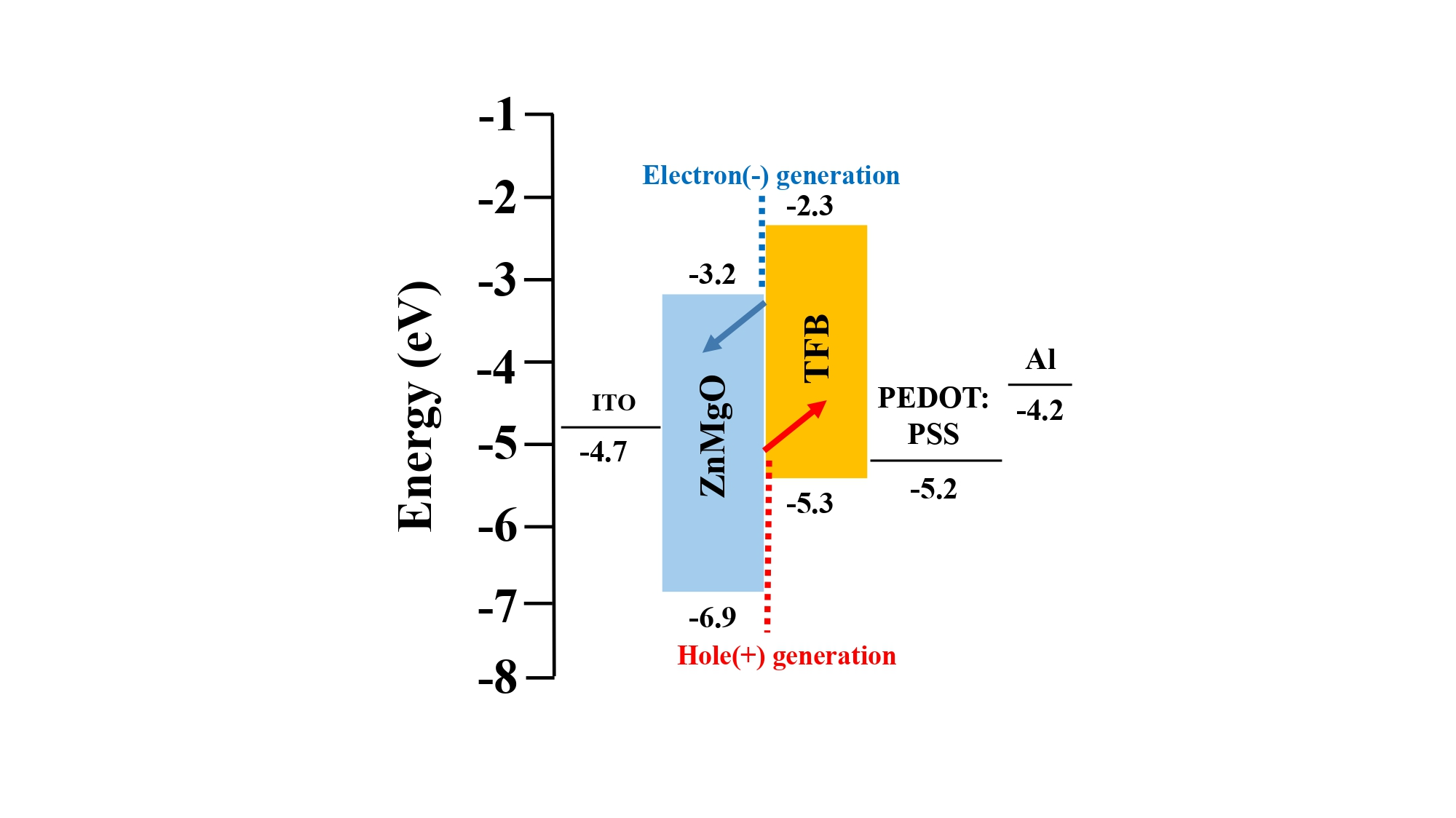 Colloidal quantum dot light-emitting diodes (QLEDs) have attracted considerable attention as promising candidates for next-generation display technologies owing to their excellent color purity and compatibility with solution-based fabrication. However, single-emission-unit devices inherently exhibit limited luminance and efficiency, which restrict further performance enhancement. To overcome these limitations, tandem QLEDs incorporating a charge generation layer (CGL) have been explored, where charges generated within the CGL are supplied to each emissive layer, enabling improved charge balance and higher luminance. In this study, we propose a CGL design employing TFB as the hole-transporting layer (HTL) to enhance charge-generation efficiency in tandem QLEDs. TFB exhibits superior hole-transport characteristics and provides a more favorable energetic alignment with ZnMgO compared to PEDOT:PSS, allowing more stable charge flow within the CGL. This configuration promotes efficient utilization of charges generated at the p–n junction while reducing losses during charge generation and subsequent injection into the emissive layers. Based on this design, tandem QLEDs with the structure ITO/PEDOT:PSS/TFB/G-QDs/ZnMgO/TFB/PEDOT:PSS/G-QDs/ZnMgO/Al were fabricated. The resulting devices exhibited balanced charge injection into the two emissive layers and showed markedly improved optoelectronic performance compared to single-emission-unit devices. Notably, the tandem device exhibited an approximately 1.5-fold enhancement in luminance relative to the single-emission-unit device. These results demonstrate that the incorporation of TFB within the CGL effectively stabilizes charge transport and enhances luminance. Overall, this work highlights TFB-based CGL engineering as an effective strategy for improving the performance of tandem QLEDs and provides a practical pathway toward high-brightness and high-efficiency QLED devices.