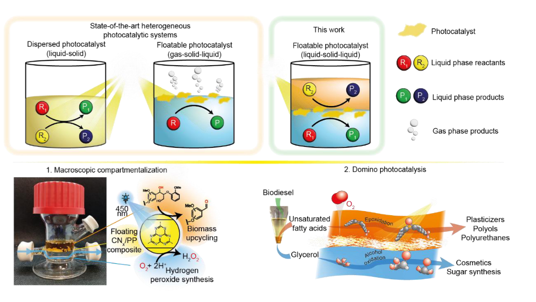for sustainable chemical synthesis using liquid|solid|liquid photocatalysis.