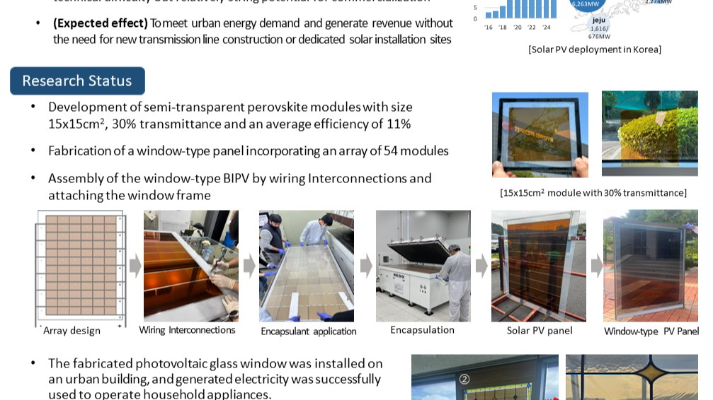 Accordingly, KEPCO has developed window-type solar cells using single-junction perovskite—a technology with high technical difficulty but strong potential for commercialization, specifically targeting the BIPV (Building Integrated Photovoltaics) market.
