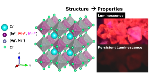 Persistent luminescence materials (PeLMs) have attracted significant attention due to their ability to store excitation energy and release it gradually as light over extended periods (from minutes to several weeks) after the excitation source is removed. These materials are widely investigated for applications like emergency signals, road markings, bioimaging, photocatalysis, optical storage and anti-counterfeiting technologies [1], [2], [3], [4]. For most of these applications, the use of PeLMs nanocrystals is preferable. However, the downscaling of PeLMs often has a detrimental effect on the persistent luminescence (PeL) observable at room temperature [5]. In this work, we investigated Mn-doped halide double perovskites in single crystals (SCs) and nanocrystals forms through X-ray Absorption Near Edge Spectroscopy (XANES). The study was specifically designed to elucidate the oxidation state distribution of Mn and its dependence on crystal size and its influence on PeL. In particular, we focused on two compositions: Cs2NaInCl6:Mn (hereafter Ag0) and Cs2Na0.2Ag0.8InCl6:Mn (Ag0.8). These stoichiometries allow to explore the influence of partial substitution of Na+ with Ag+ on the local electronic structure of Mn and, consequently, on macroscopic PeL-related properties. In both compositions (Ag0 and Ag0.8), XANES revealed the coexistence of Mn2+ and Mn3+ species for SCs and only Mn2+ for nanocrystals (both nanocubes – NC and nanoplates – NP), highlighting a mixed-valence scenario that is common in other PeLMs, like SrAl2O4: Eu2+, Dy3+ [6]. These results contribute to the broader understanding of how compositional modifications can be exploited to optimize PeL properties in emerging perovskite-based materials and beyond.