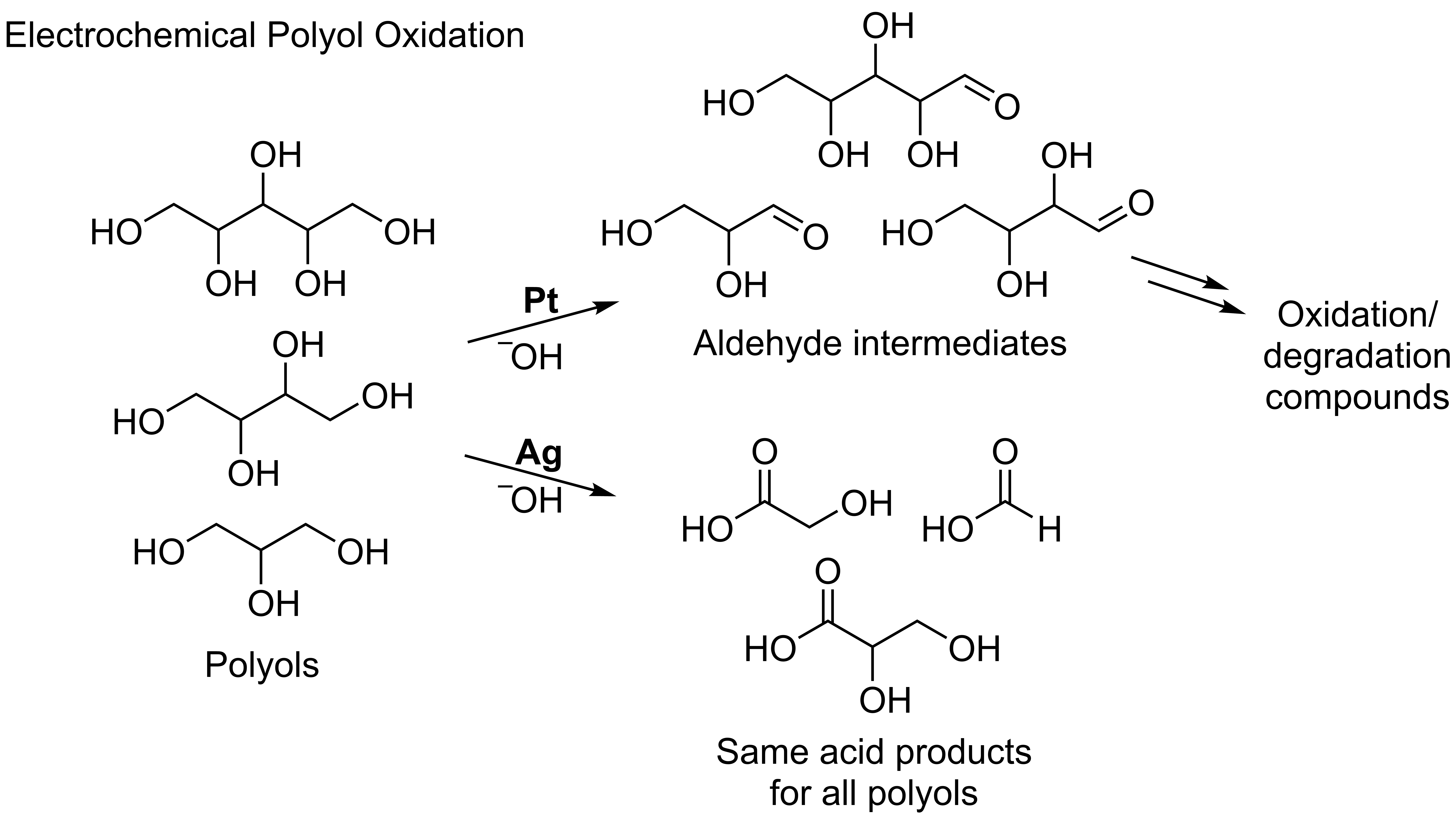 These results provide insights into the influence of polyol length on the distribution of the electrochemical oxidation products.