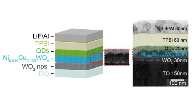 Finally, the practical feasibility of these newly developed p-type thin films was proven in advanced electronic and optoelectronic devices. When employed as a hole transport layer (HTL) in quantum dot light-emitting diodes (QD-LEDs), the Cu-doped NiWO4 enabled excellent charge balance and luminous efficiency. Furthermore, p-n heterojunction diodes fabricated with n-Si and n-IGZO exhibited highly rectifying behaviors with on/off current ratios of ~10^4 and successfully demonstrated high-speed AC-to-DC half-wave rectification up to 1 MHz.