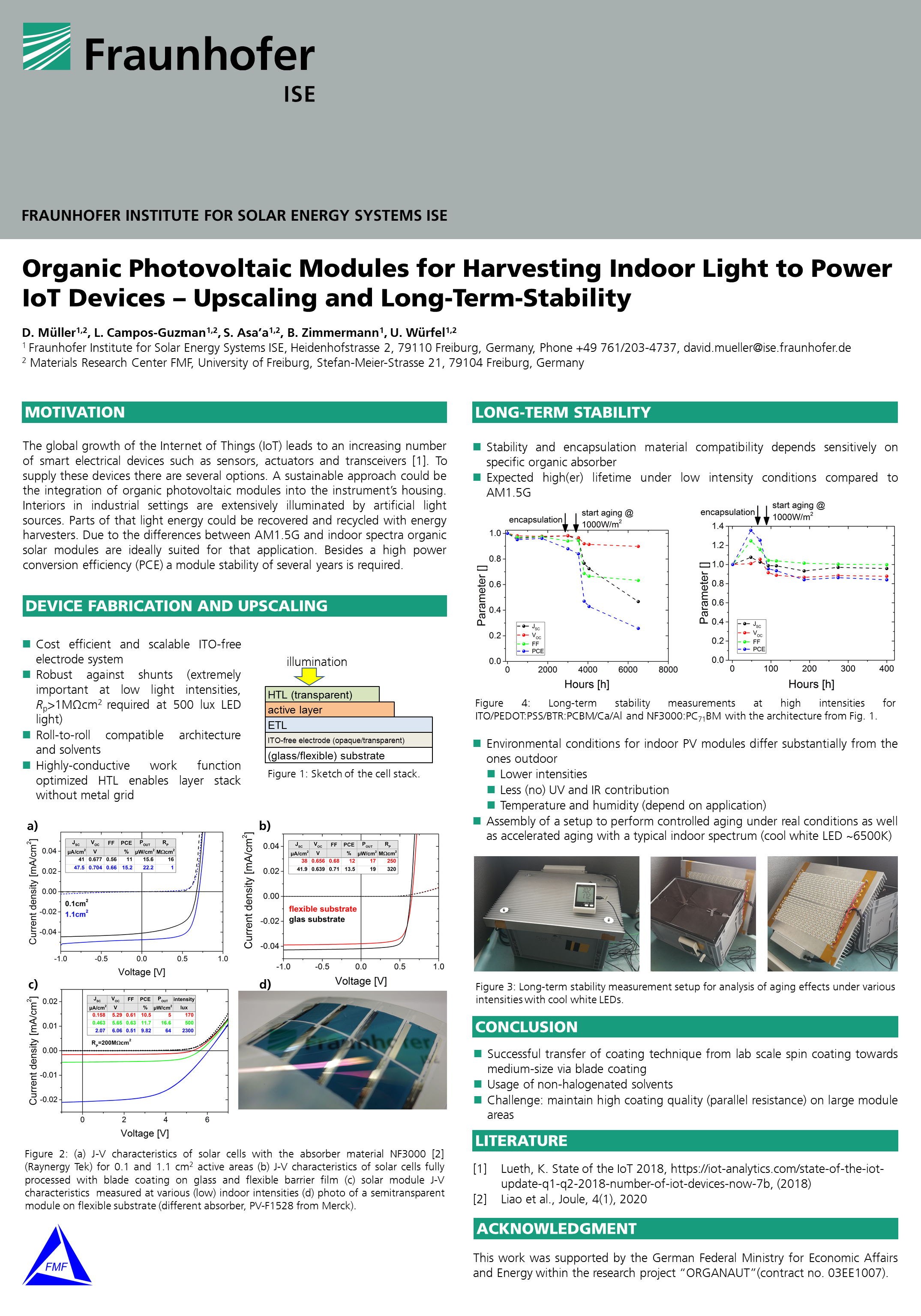 Organic Photovoltaic Modules for Harves ting Indoor Light to Power IoT Devices – Upscaling and Long-Term-Stability