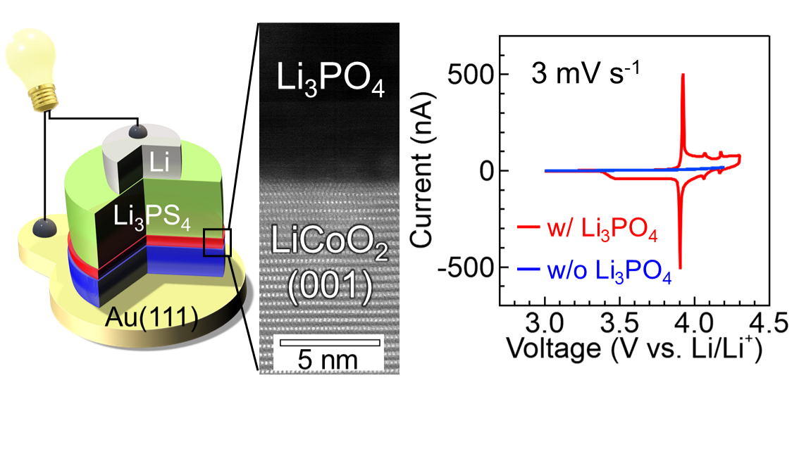 Accordingly, we utilized a thin-film model system with a clean interface, which can facilitate the measurement of the interface resistance and the quantitative analysis of the interface structure. [4,5] We previously developed a controlled interface using an amorphous Li3PO4 oxide solid electrolyte and LiCoO2 epitaxial thin-film positive electrode for quantitative analysis; the atomically well-ordered interface exhibits an extremely low resistance (~10 Ohm cm2). [6,7]