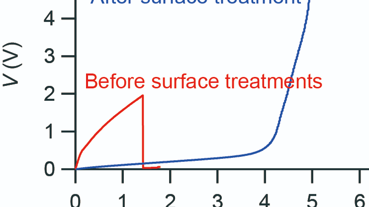 The critical current density for the dendritic growth will strongly depends on the surface chemistry of garnet. For example, exposure of garnet to ambient air forms a contamination layer of Li2CO3 and LiOH with protonation of the garnet. Since the contamination layer is a poor ionic conductor, it impedes lithium-ion transfer at the interface to the electrode. Therefore, the charging current is concentrated to part of the Li/garnet interface where the contamination layer is not formed, resulting in the short circuit. Various methods to remove the contamination layer have been proposed in order to suppress the internal short-circuit: surface polishing, heat treatment to react Li2CO3 with protonated garnet, and that reacting the Li2CO3 with carbon; however, their effects are limited. We will present a very simple method to remove the contamination layer and effectively suppress the internal short-circuit at the conference.